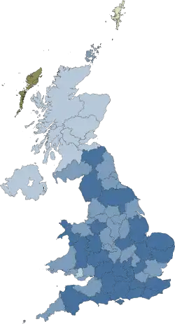 | Англия | 33356208 | 64,6 % | 14918009 | 68,7 % | 6812052 | 31,3 % |