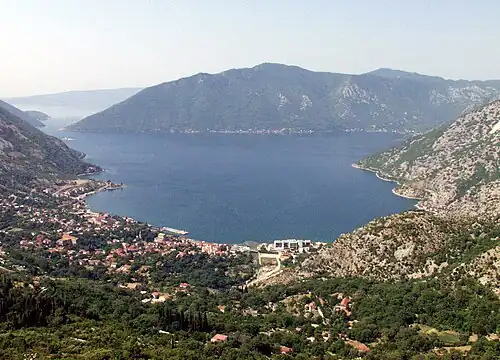 Расположен на берегу Бока-Которского залива Адриатического моря, в нескольких километрах к северу от Котора.