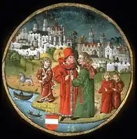 | Фридрих I Католик | 1175 — 1198 | Герцог Австрии | На переднем плане — возвращение тела герцога в Австрию из Немецкого крестового похода. На заднем плане — плавание в Святую землю. |