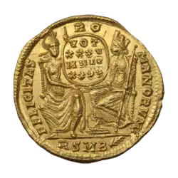 - ↑ RIC IX Mediolanum 19A. OCRE (Online Coins of the Roman Empire). Дата обращения: 27 октября 2018. Архивировано 28 октября 2018 года.
