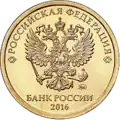 - на аверсе рублёвых монет помещено изображение эмблемы российского Центрального банка (с 2016 года — герб России), знак монетного двора, а также словесное обозначение номинала (с 2016 года — надпись «РОССИЙСКАЯ ФЕДЕРАЦИЯ») и год выпуска;