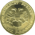 - ↑ На монетах появится изображение герба РФ (рус.). — «Банк России начал чеканить монеты со своей эмблемой в 1992 году, когда государственный герб Российской Федерации еще не был утвержден. В 2011 - 2014 годах Банк России использовал изображение государственного герба на памятных монетах, посвященных Олимпийским играм в Сочи.»