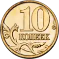 С целью удешевления производства монеты в 10 и 50 копеек с 2006 года стали чеканиться из стали, плакированной сплавом томпак. В отличие от чеканившихся ранее, монеты новой разновидности обладали магнитными свойствами и имели гладкий гурт. Аналогично материал монет в 1, 2 и 5 рублей был заменён в 2009 году на сталь с никелевым гальванопокрытием[42].