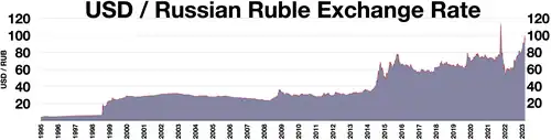 - ↑ Bank of Russia Halts FX Buys as Ruble Slumps Near 100 to Dollar. Дата обращения: 12 августа 2023. Архивировано 9 августа 2023 года.