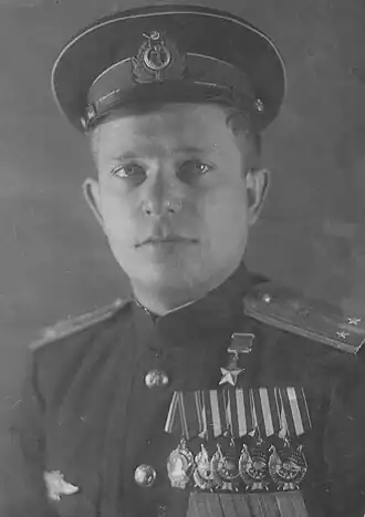 Всего за годы войны совершил 153 боевых вылета (к 16.04.1945), в том числе 6 с выполнением торпедирования. На Северном флоте Герой ещё более увеличил свой боевой счёт: лично потопил подводную лодку и в составе группы 2 транспорта, повредил 1 транспорт и 2 миноносца.