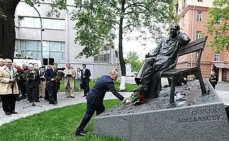 - ↑ Путин открыл памятник Михалкову. www.mk.ru. Дата обращения: 28 апреля 2023. Архивировано 28 апреля 2023 года.