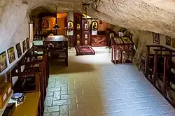 На территории участка была выдолблена пещера, в которой оборудовали небольшое место для молитвы, а потом и вовсе превратили в церковь.