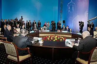 | каз. Астанадағы ШЫҰ саммиті (2011) кит. упр. 2011年上海合作组织阿斯塔纳峰会 англ. SCO Summit in Astana (2011) | |