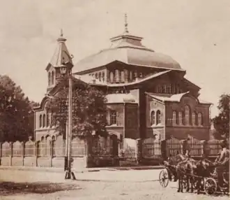 8 сентября 1886 года был заложен молитвенный дом во имя Святой Троицы, который к началу 1887 года был перестроен в полноценный храм. Деньги на постройку храма собирали горожане и значительную сумму выделил владикавказский купец Пётр Андреев, сын которого построил на Александровском проспекте собственный доходный дом[1]. 15 ноября 1887 года храм был освящён экзархом Грузии архиепископом Палладием. При храме действовали благотворительная столовая, бесплатная лечебница и богатая библиотека с читальней[2]. 20 сентября 1888 года храм посетил российский император Александр III с семьёй[1][3]. В последующие годы около храма было построено Свято-Троицкое училище (сегодня — дом № 31 по улице Кирова). [2]