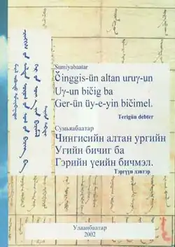- ↑ Чингисхан. Сокровенное сказание / Чингисхан. — Москва: Эксмо, 2018. — 480 с. — (Тайны древних цивилизаций). — 2000 экз. — ISBN 978-5-699-59561-7.
