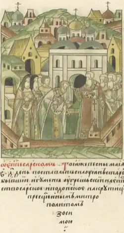 6 сентября 1495 года был при избрании, а 20 сентября — при посвящении митрополита Российского Симона.