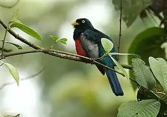 - ↑ Collar, N. (2020). Blue-tailed Trogon (Trogon comptus), version 1.0. In Birds of the World (J. del Hoyo, A. Elliott, J. Sargatal, D. A. Christie, and E. de Juana, Editors). Cornell Lab of Ornithology, Ithaca, NY, USA. https://doi.org/10.2173/bow.buttro1.01 retrieved October 25, 2021