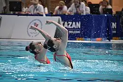 Синхронное плавание, также с 2017 года используется название артистическое[1][2] (или художественное[3]) плавание (англ. artistic swimming) — водный вид спорта, связанный с выполнением в воде различных фигур под музыку.