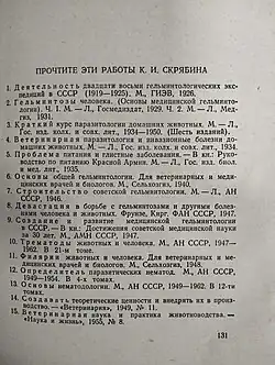 - Скрябин К. И. Избранные труды / Редкол.: В. П. Шишков (пред.) и др.; Сост. и коммент. Б. А. Астафьева и др. — М.: Агропромиздат, 1991. — 448 с. — (Классики отечественной сельскохозяйственной науки). — ISBN 5-10-001994-8.