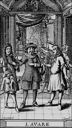 Сочинена в 1668 году. Первая постановка: 9 сентября 1668 года в театре Пале-Рояль, Париж (в роли Гарпагона — сам Мольер).