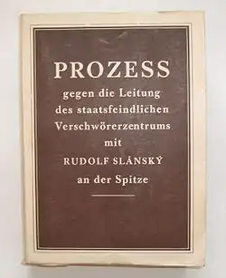 Рудольф Сла́нский (чеш. Rudolf Slánský, настоящая фамилия Зальцман[7]; 31 июля 1901, Незвестице, Австро-Венгрия — 3 декабря 1952, Прага, Чехословакия) — чехословацкий государственный деятель и журналист. Член Коммунистической партии Чехословакии с 1921 года; с 1929 года — член ЦК КПЧ[8], с 1945 года — генеральный секретарь ЦК КПЧ. В 1935—1938 и в 1946—1952 — депутат Национального Собрания Чехословацкой Республики. Участник борьбы против фашизма в годы Второй мировой войны, один из руководителей Словацкого национального восстания 1944 года[9]. На сфабрикованном процессе 1952 года, в котором Сланский фигурировал как организатор и глава заговора, приговорён к смертной казни[7]. Реабилитирован (1963).