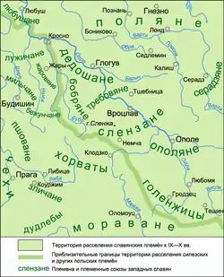 В группу силезских племён входили как собственно слензане, так и бобряне (бобжане), голенжицы, дедошане (дзядошане) и ополяне. С севера земли слензан граничили с землями лехитского племени полян, территорию к востоку от слензан населяло ещё одно лехитское племя — висляне. На западе соседями слензан были племена лужицких сербов, на юго-западе и юге — чехи и мораване[7].