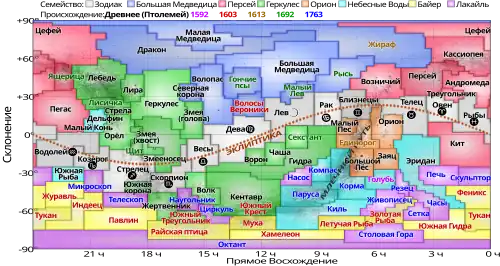 | Змееносец | Ophiúchus | Ophiúchi | Oph | 948 | 100 | Птолемей | |