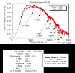 Солнечная радиация измеряется мощностью переносимой ею энергии на единицу площади поверхности (Вт/м2) (см. Солнечная постоянная). В целом, Земля получает от Солнца менее 0,5×10−9 (одной двухмиллиардной) от энергии его излучения.