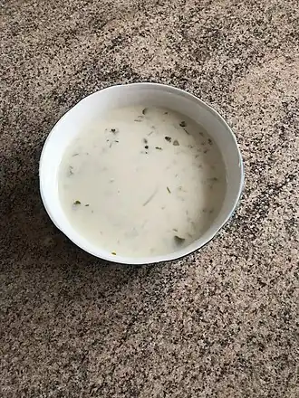 Вторым компонентом супа является мацун, разведённый до желаемой консистенции. Иногда к мацуну добавляется часть сметаны. Третий компонент супа — куриные яйца.