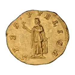 Во время кризиса Римской империи III века одной из наиболее привлекательной для всех слоёв общества идеей была надежда на восстановление мира и изобилия. Это нашло отображение в частой чеканке монет с богиней Спес с эпитетами «счастья в мире» («FELICITATIS ORBIS»)[22][23], «твёрдая» («FIRMA»)[24][25] и др.[26]