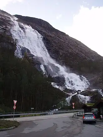 705—755[5] | фюльке Вестланн, коммуна Эурланн | Кьел | Состоит из трёх потоков, высота которых оценивается в 640, 675 и 765 м. Вообще оценка высоты собственно водопада сильно менялась с годами, от 563 до 840 м[6]. | |