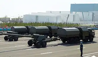 Пояснение: согласно некоторым источникам, на вооружении артиллерийских частей Сухопутных войск Казахстана, также имеются такие образцы вооружения как РСЗО «Найза» на базе КамАЗ-6350, самоходный 120мм миномёт «Айбат» на базе МТ-ЛБ и самоходная 122мм гаубица «Семсер» на базе КамАЗ-6350. Однако данные образцы, разработанные при участии специалистов израильских компаний Soltam Systems и Israel Military Industries, так и не были приняты на вооружение казахстанской армии. Причиной отказа принятия стали конструктивные недостатки, выявленные в ходе государственных испытаний. Так в миномёте «Айбат» после выстрелов происходила деформация днища тягача. Шасси гаубицы «Семсер» оказалось перегруженным. А в РСЗО «Найза» выход реактивных струй от снарядов мог повредить платформу на которой был установлен пакет с направляющими и кабину с расчётом. Из-за выявленных при испытаниях недостатков, было возбуждено уголовное дело, по которому главными обвиняемыми проходили Начальник Артиллерии и ракетных войск Сухопутных войск генерал-лейтенант Маерманов Кажимурат и гражданин Израиля Борис Шейнкман. В ходе судебного разбирательства было доказано, что все три образца оказались непригодными к эксплуатации, из-за технических просчётов израильских инженеров, а также некачественной сборки лицензионных систем на казахстанских оборонных предприятиях[29][30][31]. До ноября 2008 года казахстанская армия должна была получить 2 огневые батареи «Айбат» и «Семсер» по 6 единиц каждая, а также дивизион «Найза» из 18 единиц с транспортно-заряжающими машинами в комплекте. Однако были получены только по 2 единицы «Айбат», «Семсер» и «Найза»[32]. По состоянию на август 2009 года, артиллерийские системы «Найза» и «Семсер» так и не были приняты на вооружение[33].