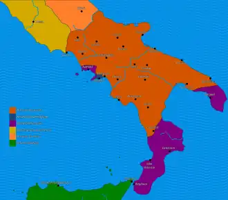 - ↑ Владения лангобардов в Южной Италии, в состав которых входили Беневенто и герцогство Сполето, называли «Малой Лангобардией». От «Северной Лангобардии» её отделял так называемый византийский коридор по линии Рим — Равенна.