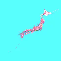 - Данные по площади соответствуют данным Института географических исследований Японии по состоянию на 2007-10-01.