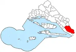 ![]() | 243,00 | 2705 | 2177 | 43°54′38″ с. ш. 16°23′47″ в. д. | хорваты — 93,25 % сербы — 5,28 % | ![]() | [15][16] |