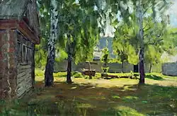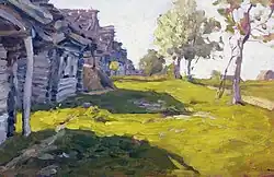 ![]() | Избы, освещенные солнцем | 1889 | Картон, масло | 14,9 x 24,5 | Краснодарский краевой художественный музей им. Ф. А. Коваленко |