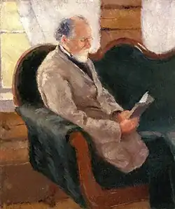 | Читающий Андреас англ. Andreas Reading, норв. Andreas leser | ![]() | 1882—1883 | негрунтованный картон, масло | 57 x 48 | 78 | местонахождение не установлено, 10 декабря 2014 года продана на аукционе «Сотбис», оцениваясь в £100 000—150 000 | [43][44] |