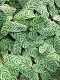 Ктенанты — травянистые растения, образующее розетки продолговатых листьев с орнаментом из пятен вдоль жилок; изнанка листьев темноокрашенная, пурпурных тонов. У некоторых исходных видов листья зелёные, но культуре распространены пестролистные формы. Используются в цветочных композициях. | |