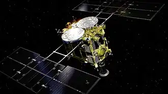 28 июня 2018 - 13 ноября 2019 | посадка, забор и доставка образцов грунта | Сложная миссия с высадкой на поверхность двух малых посадочных модулей и германо-французского исследовательского модуля MASCOT. Сам аппарат после двух удачных посадок, доставил капсулу с образцами на Землю и на октябрь 2023 года находится на пути к двум другим астероидам. | |