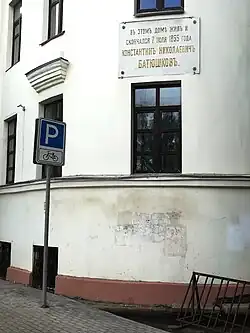 | 2005, 19 июля | Советский проспект, 20 | Установлена на доме, где в 1833-1844 годах проживал поэт К.Н. Батюшков. На открытии памятной доски присутствовала приехавшая из Львова Вера Борисовна Ильинская — прапрапраправнучка племянника поэта Г.А. Гревенса, который в конце жизни ухаживал за К.Н. Батюшковым[21]. | ||