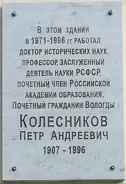 - ↑ Мемориальная доска появилась на здании вологодской школы. ИА "Северинфо". 11 мая 2018. Архивировано 4 июля 2018. Дата обращения: 4 июля 2018.