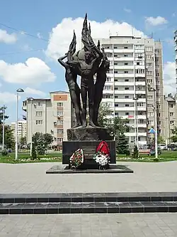 Памятник воинам, принимавшим участие в освобождении города от немецко-фашистских захватчиков[6] | 1965 | И. П. Шмагун — скульптор. Е. Г. Лашук — архитектор. | Победы площадь | |