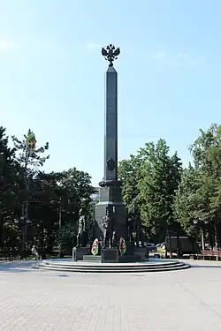 Обелиск воинам, принимавшим участие в освобождении города в 1920 году от белогвардейцев | 1967 | Зингер — архитектор, Мхитарьянц — архитектор | Ростовское шоссе, пересечение с Офицерской улицей | Открытие приурочено к 50-летию Октябрьской революции. |