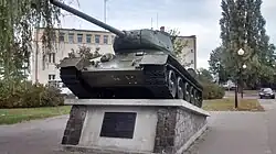 1976[6] | В 1990-х годах был перекрашен в розовый цвет, позднее танку вернули оригинальный тёмно-зелёный окрас. В 2017 году был взят на баланс городского археологического музея и таким образом выведен из-под действия закона о сносе советских памятников[7]. |