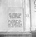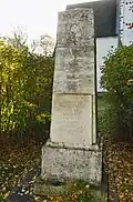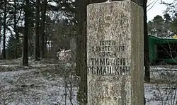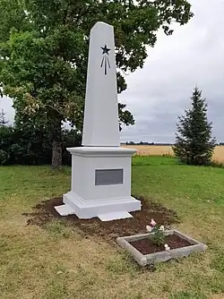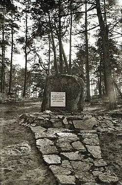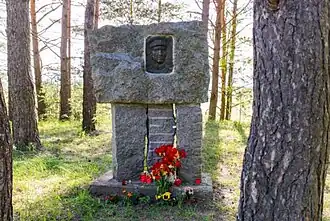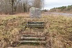 с 1997 до 2024 года[27]. Первоначальный бетонный советский памятник с другой надписью стоял перед зданием волостной управы, где также находится братская могила, современный памятник из валуна с чёрной гранитной плитой расположен к востоку от могилы на газоне и был установлен там в 1990-х годах. | ||