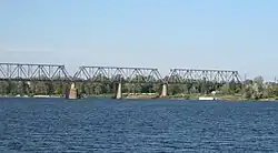 | 3 | Петровский железнодорожный мост | Киев | 50°29′01″ с. ш. 30°32′32″ в. д. | Железнодорожный | Ферменный, общая длина 1418 м (в том числе над рекой около 550 м), высота над водой 20 м | 9 ноября 1929 | |