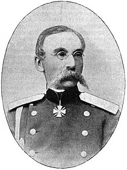 - ↑ Был обвинён Куропаткиным в мошенничестве и финансовых злоупотреблениях, вследствие чего принял яд. См.: Редигер А. Ф. История моей жизни. Воспоминания военного министра. Т. 1. — М., 1999. — С. 299—300.