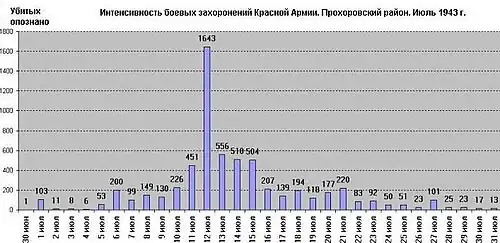 - ↑ По данным http://www.prohorovskoe-pole.ru/index.php/funeral.html Архивная копия от 30 ноября 2012 на Wayback Machine; обработано 9760 воинских записей 18-ти захоронений Прохоровского района в 1941—1945 гг.