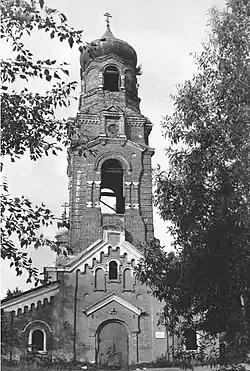 Старая колокольня 1814 года постройки получила большое отклонение по вертикали, поэтому после осмотра губернским архитектором в 1879 году была признана аварийной и разобрана. По проекту архитектора С. К. Родионова в 1883 году построена новая двухъярусная колокольня с крупным куполом в русском стиле[3].