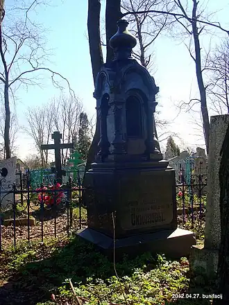 Наибольшее любопытство может вызвать надгробный памятник Даниле Парфеновичу (†09.07.1909) и Ирине Миленцевне (†27.10.1901) Симоновым в виде часовни. Подобные памятники стояли ранее на Красном и Ксаверьевском кладбищах, но полностью сохранился только этот. Древнейшее из сохранившихся погребений принадлежит Михаилу Даниловичу Чернышову, умершему 28 марта 1879 года.
