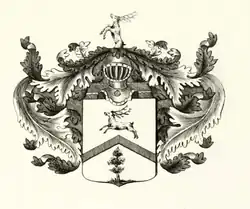 В щите, имеющем серебряное поле, изображён олень бегущий направо и под ним горизонтально красное стропило. Внизу стропила, оливковое дерево. Щит увенчан обыкновенным дворянским шлемом, с выходящим из-за него оленем. Намёт: серебряный, подложен зелёным[1].