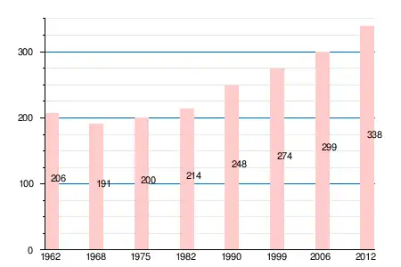 | 206 | 191 | 200 | 214 | 248 | 274 | 299 | 297 | 331 | 338 |