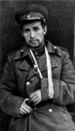- ↑ По разным сведениям: записался в ряды армии добровольно[3]; служил срочную службу в войсках НКВД в 1930—1932 годах[5][6]; был призван в 1932 году, служил в звании командира запаса[4].