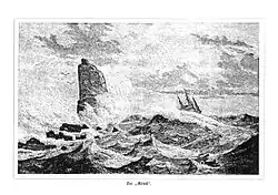 В 1800 году пастор Джиирген Ландт также описал водоворот и сам остров, форма которого в высоту напоминала монаха, имеющего шею из красной глины, тело и голову из тёмно-серого камня или базальта.