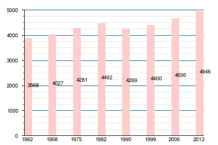 Население коммуны в 2011 году составляло 4966 человек[7], в 2012 году — 4950 человек[8], а в 2013-м — 4946 человек[6].